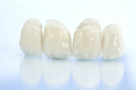 非常に強度の高いジルコニア素材で作られた詰め物・被せ物です。耐久性に優れ、特に奥歯の治療に適しており、長期間にわたって使用できます。見た目も自然で、金属アレルギーの心配がありません。透明度が低いため、前歯の治療などには不向きなことがあります。
